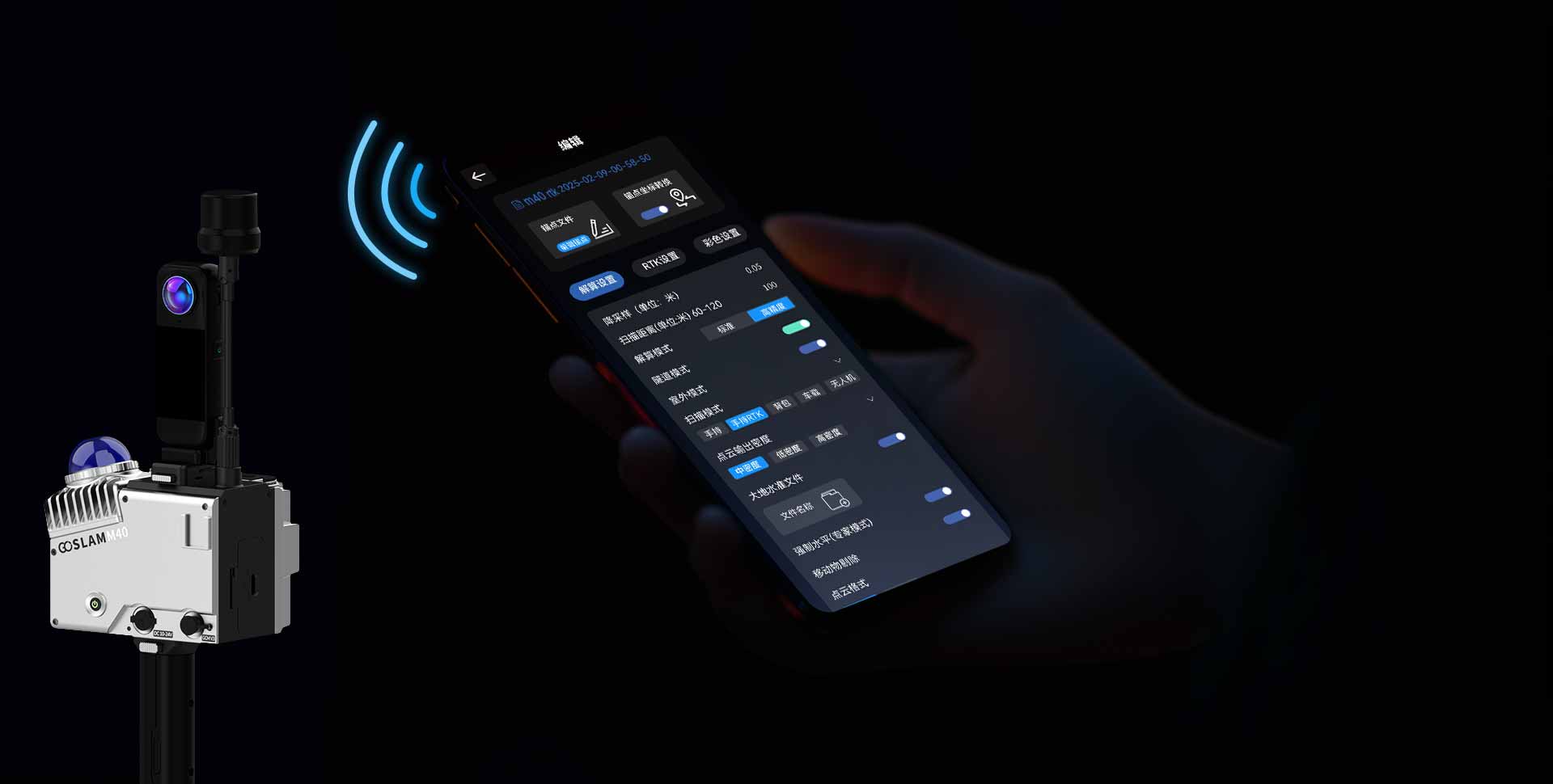 在GoSLAM Manager APP中,可以通过M40 RTK主机进行高精度后解算、支持2mm分辨率技术。