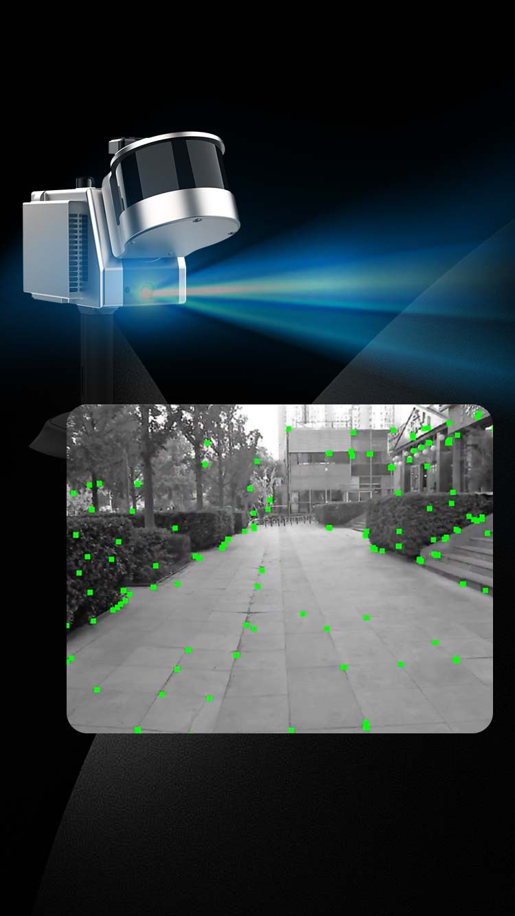 内置高分辨率视觉SLAM组件同步记录视觉影像,进行高精度视觉SLAM技术建图。